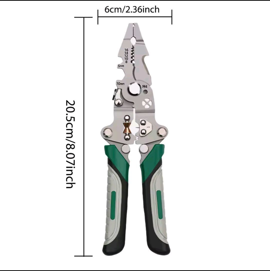 🟢 Multi-function design – Strips, splits, crimps, and winds wire in one tool