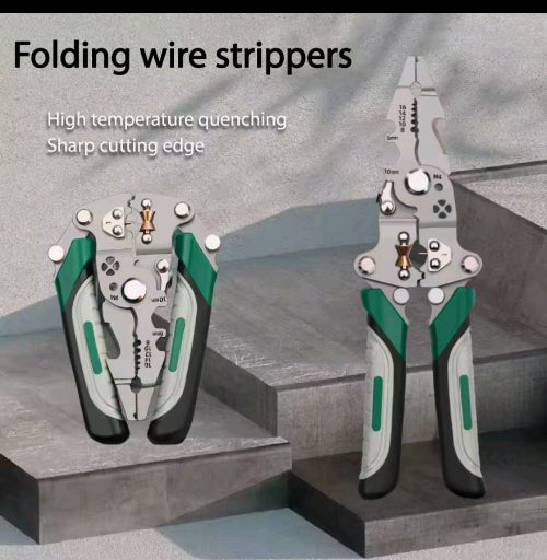 Meet the Foldable Wire Stripper & Crimping Tool — your all-in-one solution for efficient and accurate wire processing. With its pulley design and foldable structure, this multi-function hand tool simplifies electrical work for both professionals and DIYers. Switch between wire stripping, splitting, crimping, and winding with ease — no extra tools required.