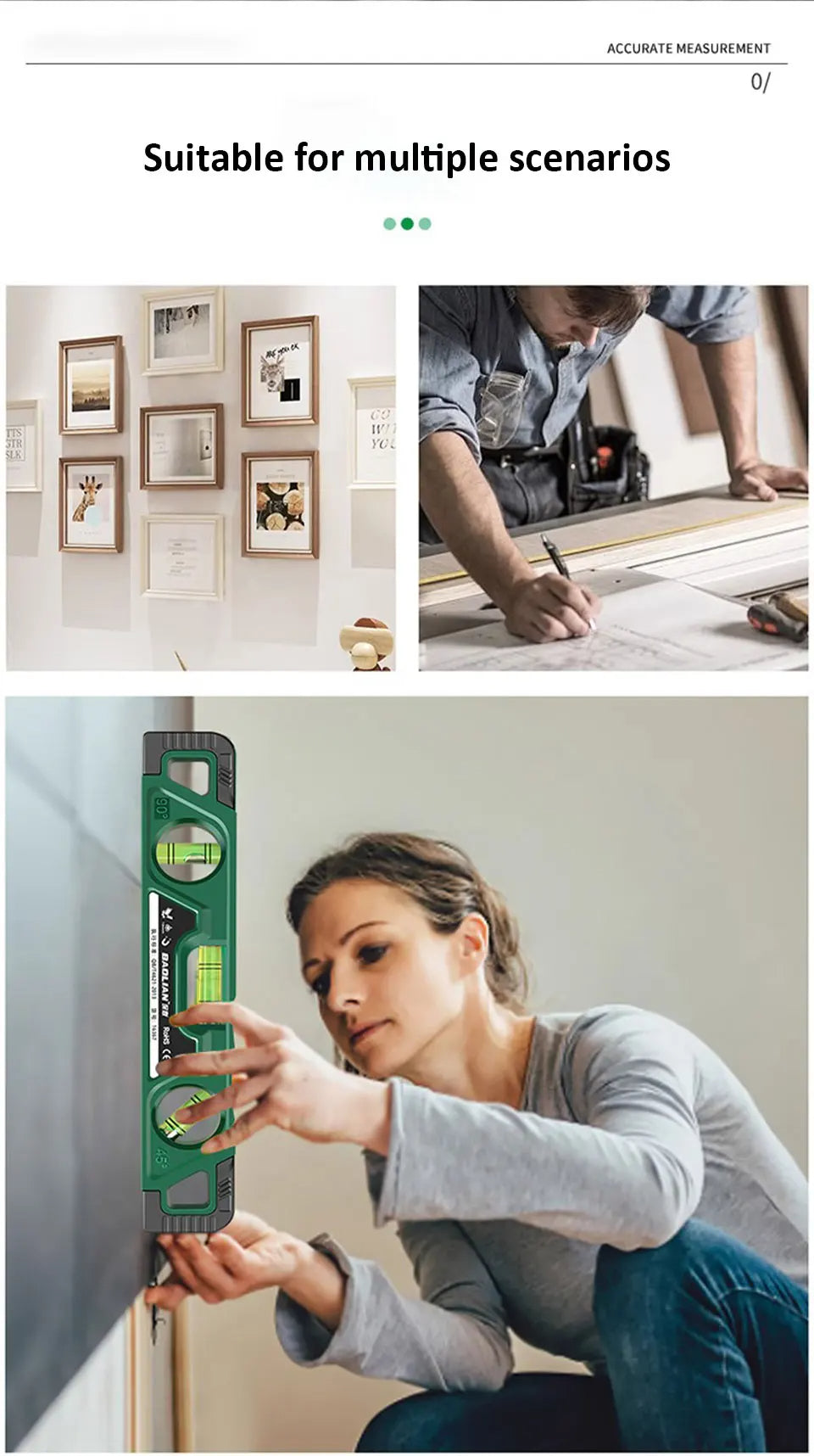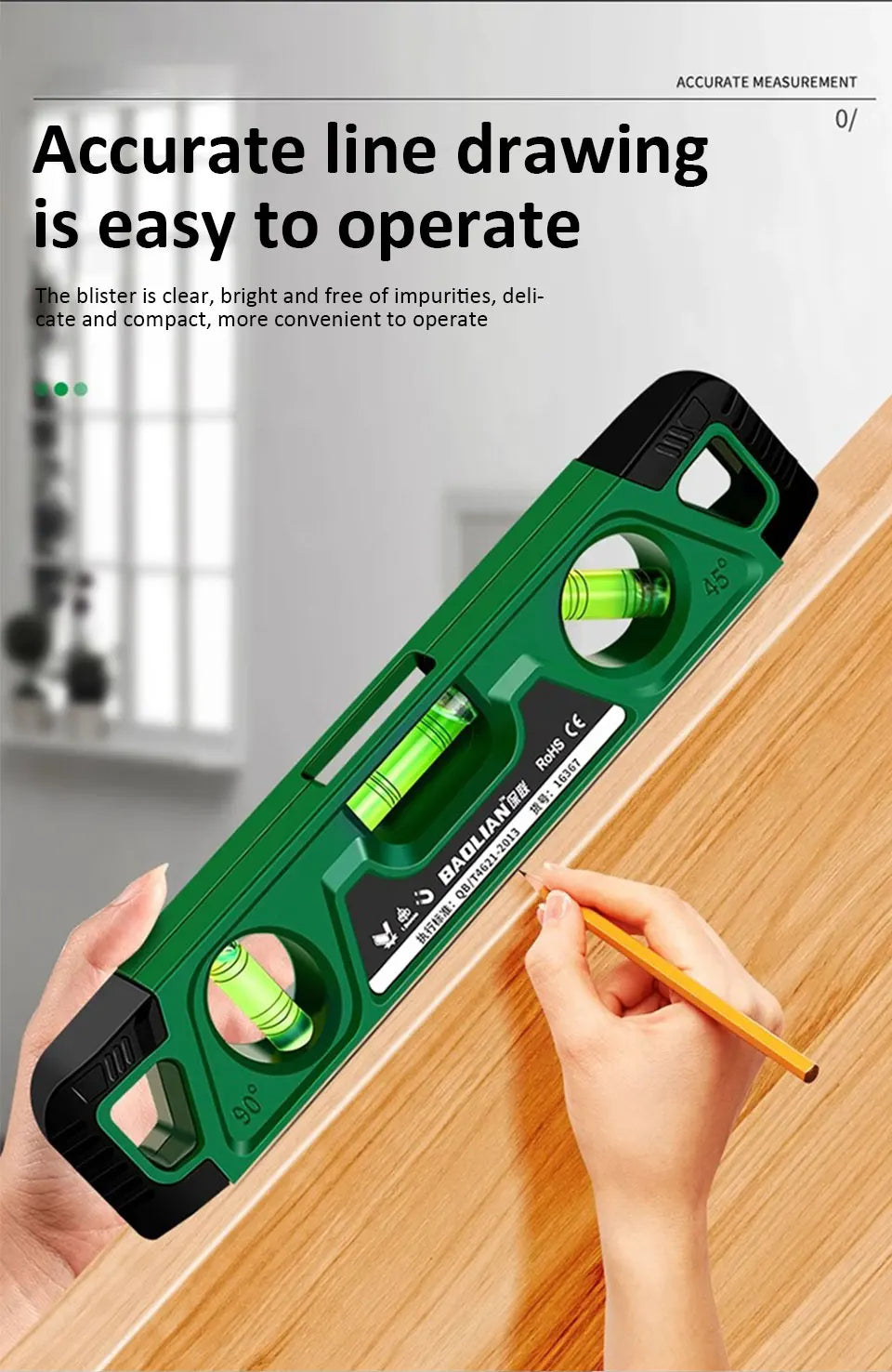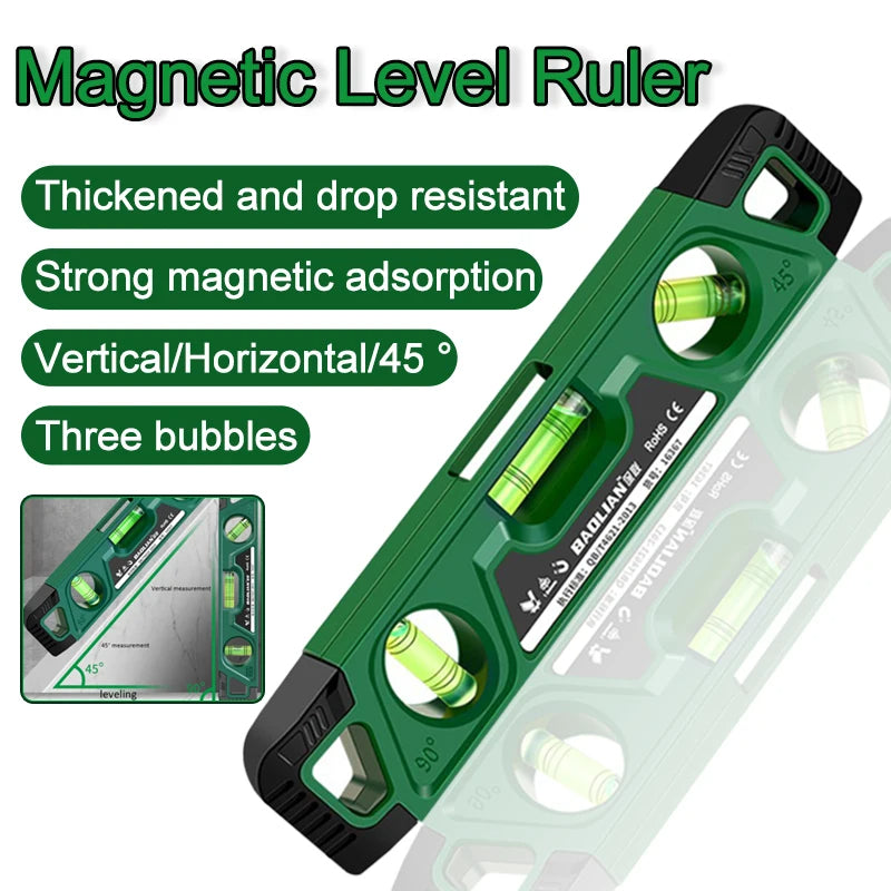 This Mini Magnetic Level Ruler offers accurate 3-angle readings — 0°, 45°, and 90° — in a slim, rugged design. Built with a shockproof body and strong embedded magnets, it sticks securely to any metal surface, freeing up your hands and boosting your efficiency. Whether you're on-site or doing DIY at home, it's the ideal balance of portability and precision.