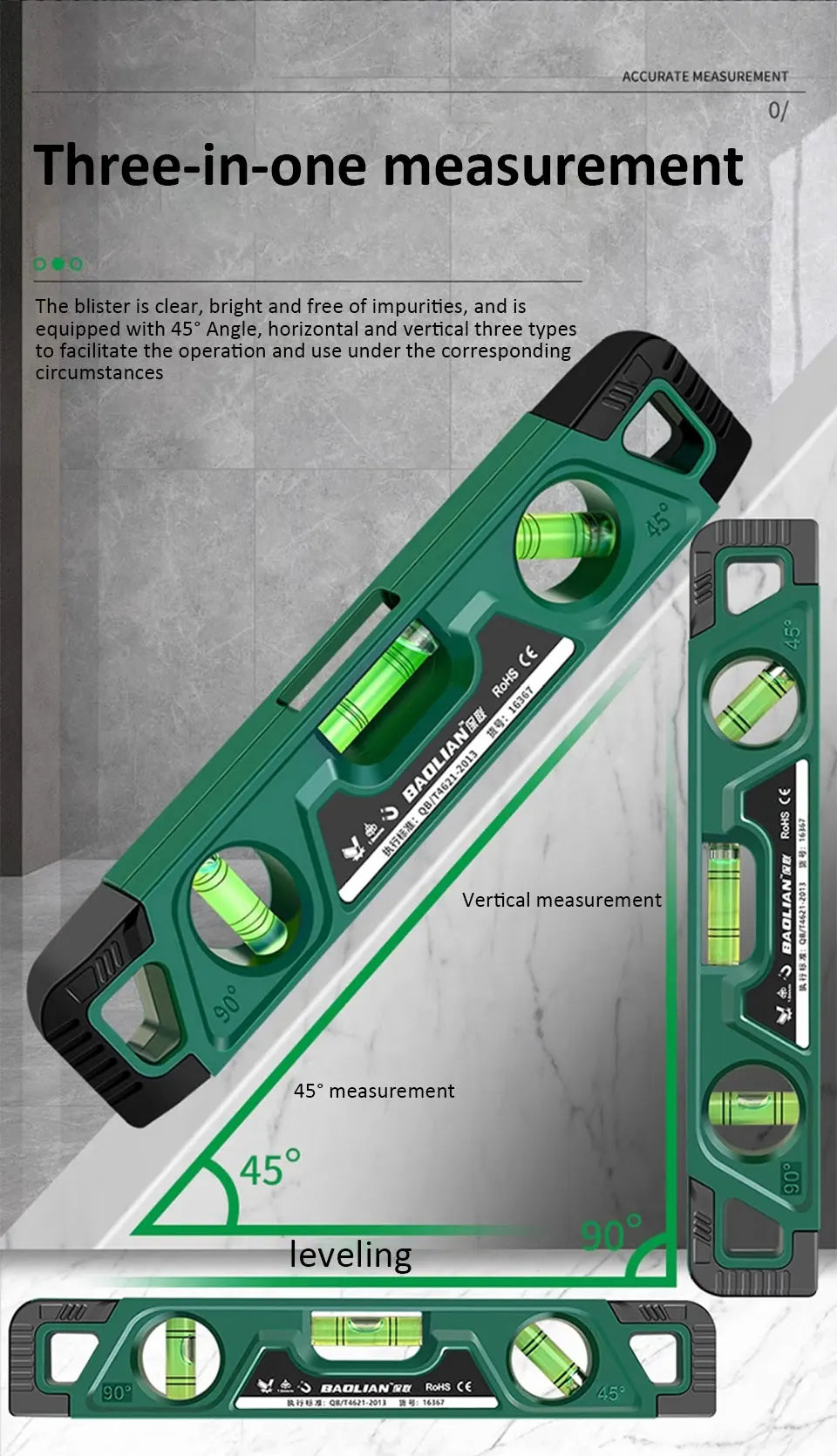 ✅ Three-angle measurement – 0°, 45°, and 90° for versatile applications