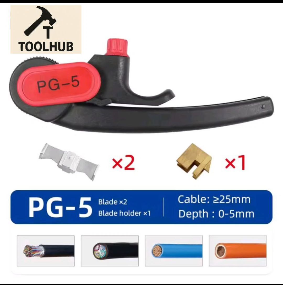 The PG-5 Ratchet Cable Stripper is specially designed for clean, precise stripping of thick round cables. Its ratchet wheel mechanism provides superior control and efficiency, even on the toughest jobs. Whether you're a professional electrician or working on industrial setups, this tool offers the strength and accuracy you need.