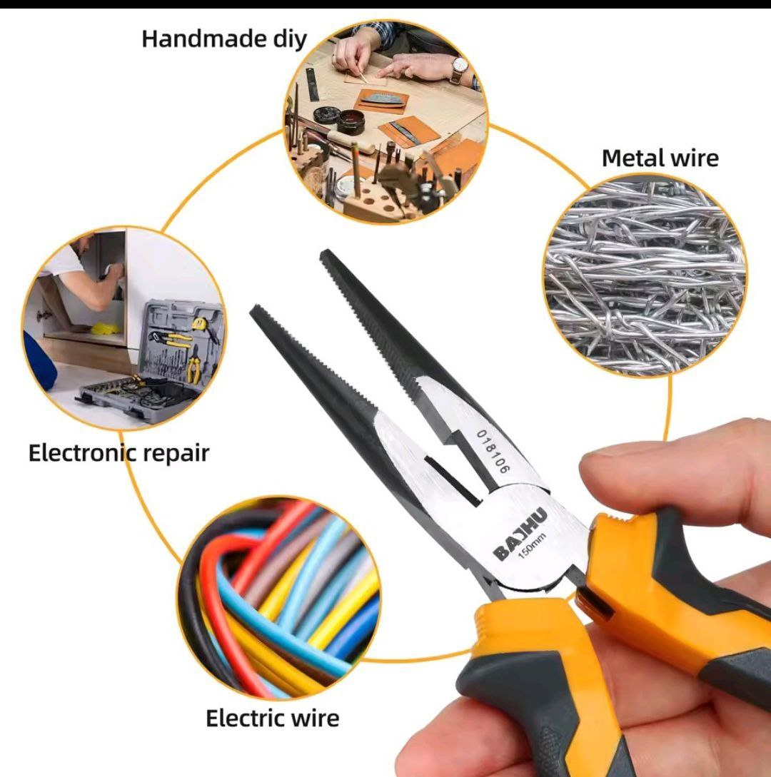 Tackle detailed tasks and tight spaces with confidence using our 6/8 inch Needle Nose Pliers—an essential tool for electricians, DIYers, and repair professionals. Built for precision and control, these pliers are ideal for gripping, bending, stripping, and cutting in hard-to-reach areas.