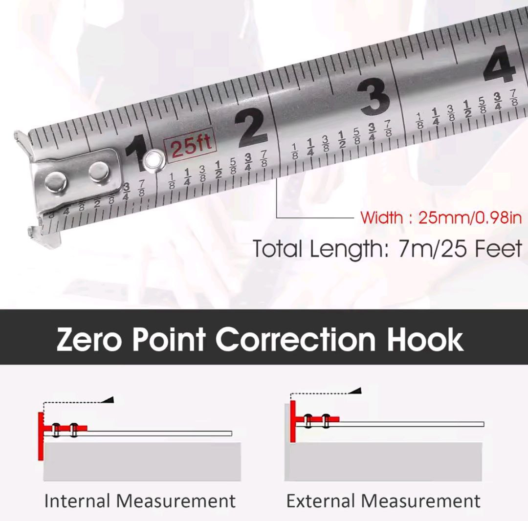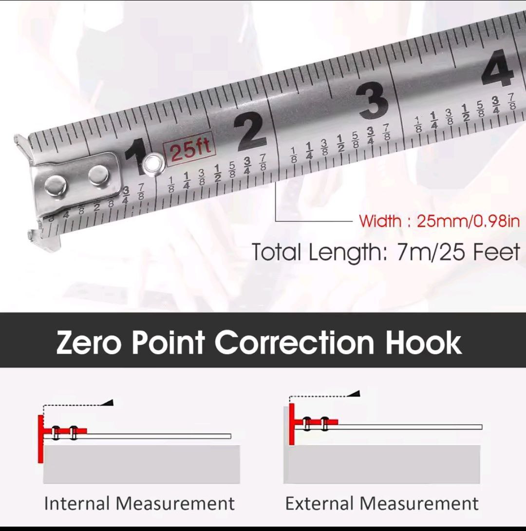 Both sides of the tape feature clear, easy-to-read metric and imperial measurements. Use the inside or outside of the hook for reference — the precision is built-in.